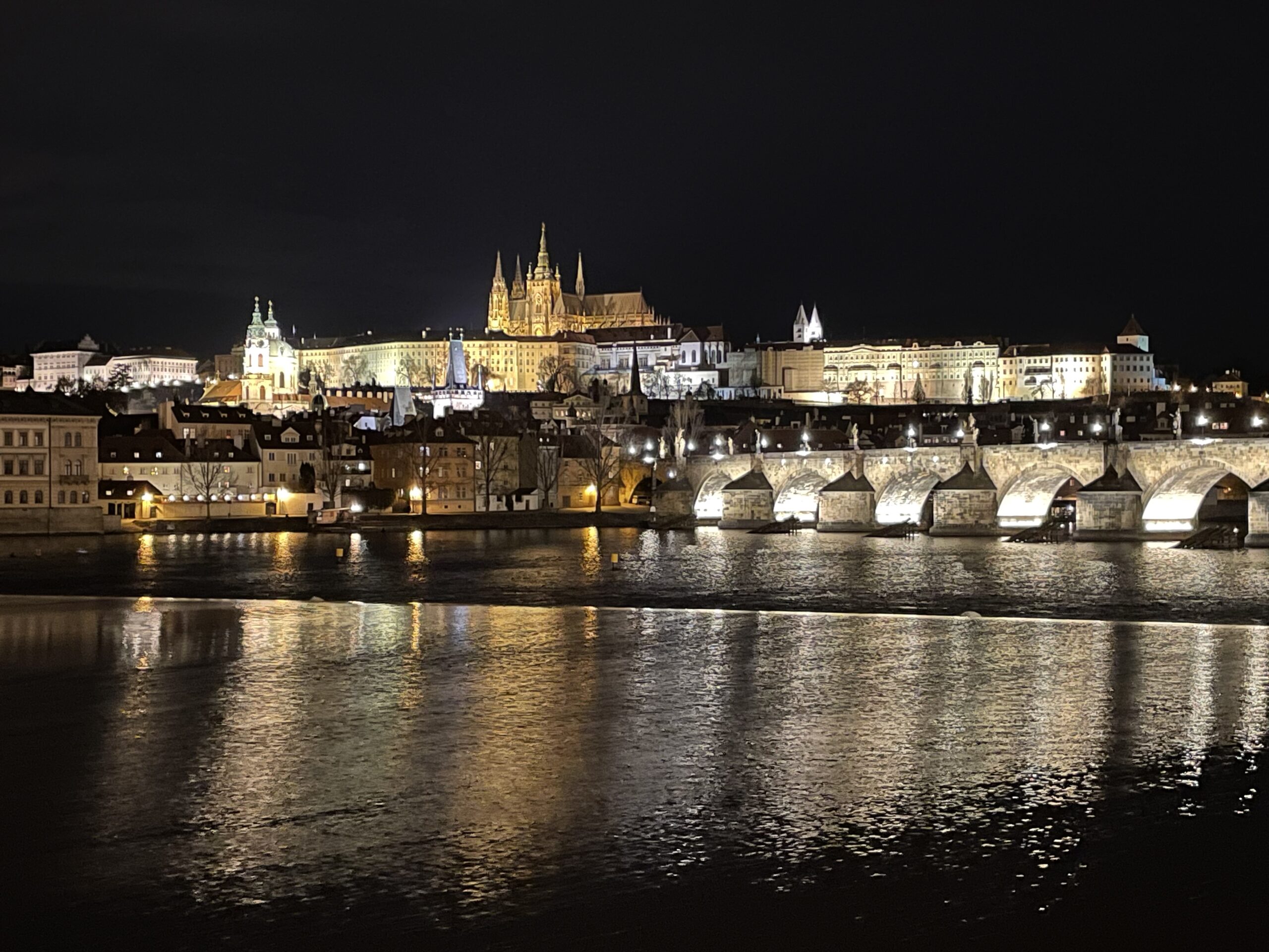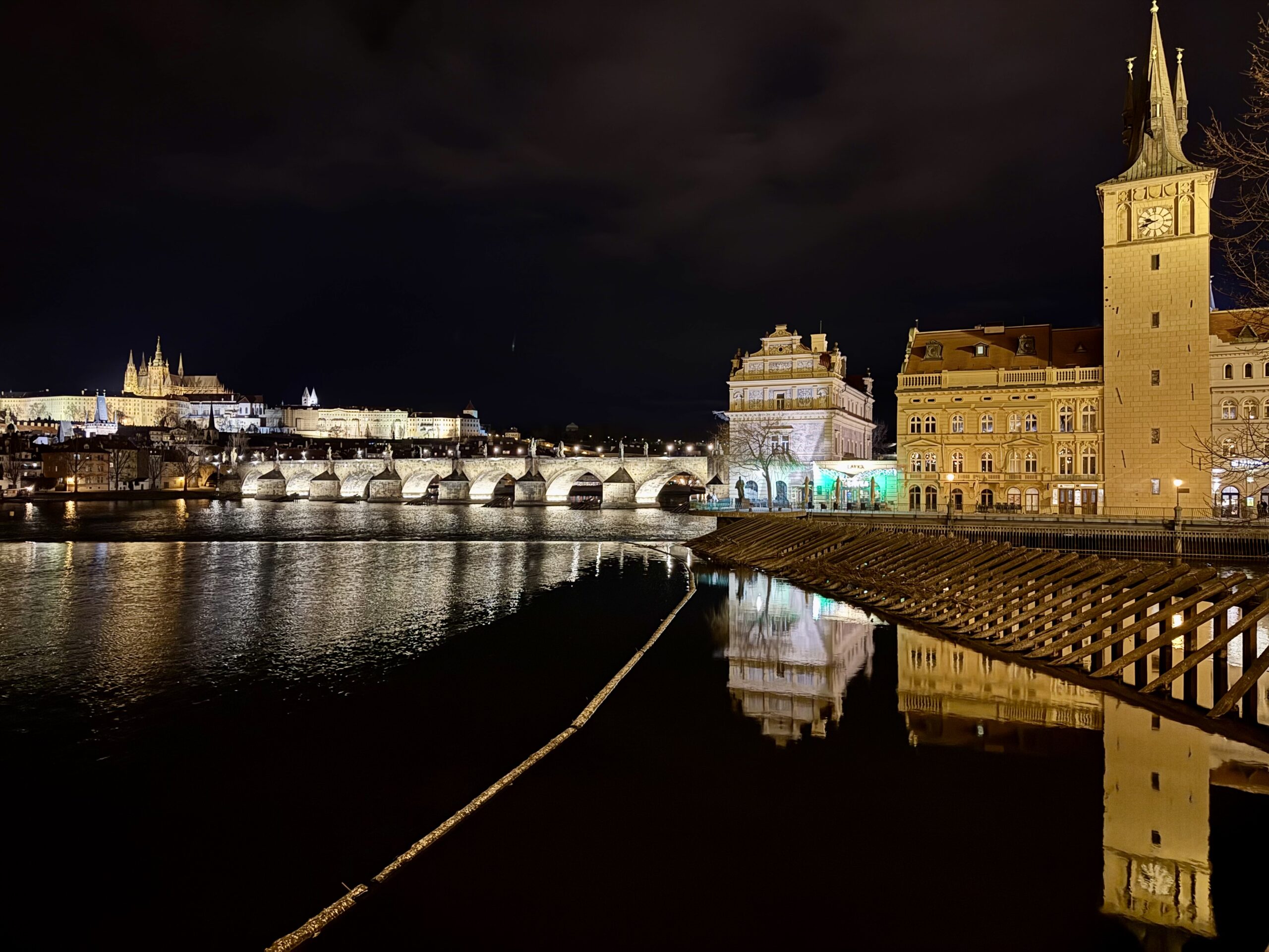 Am Abend stärken wir uns mit einer Açaí Bowl, dann besuchen wir das „Image Black Light Theater“ und schauen uns die Show „Afrikania“ an. Der Tanz im Schwarzlicht sieht cool aus, aber die Geschichte ringsherum ist eher peinlich und unnötig. Auf dem Rückweg bestaunen wir noch einmal das nächtliche Panorama auf der Kleinseite und spazieren ein letztes Mal über die Karlsbrücke.