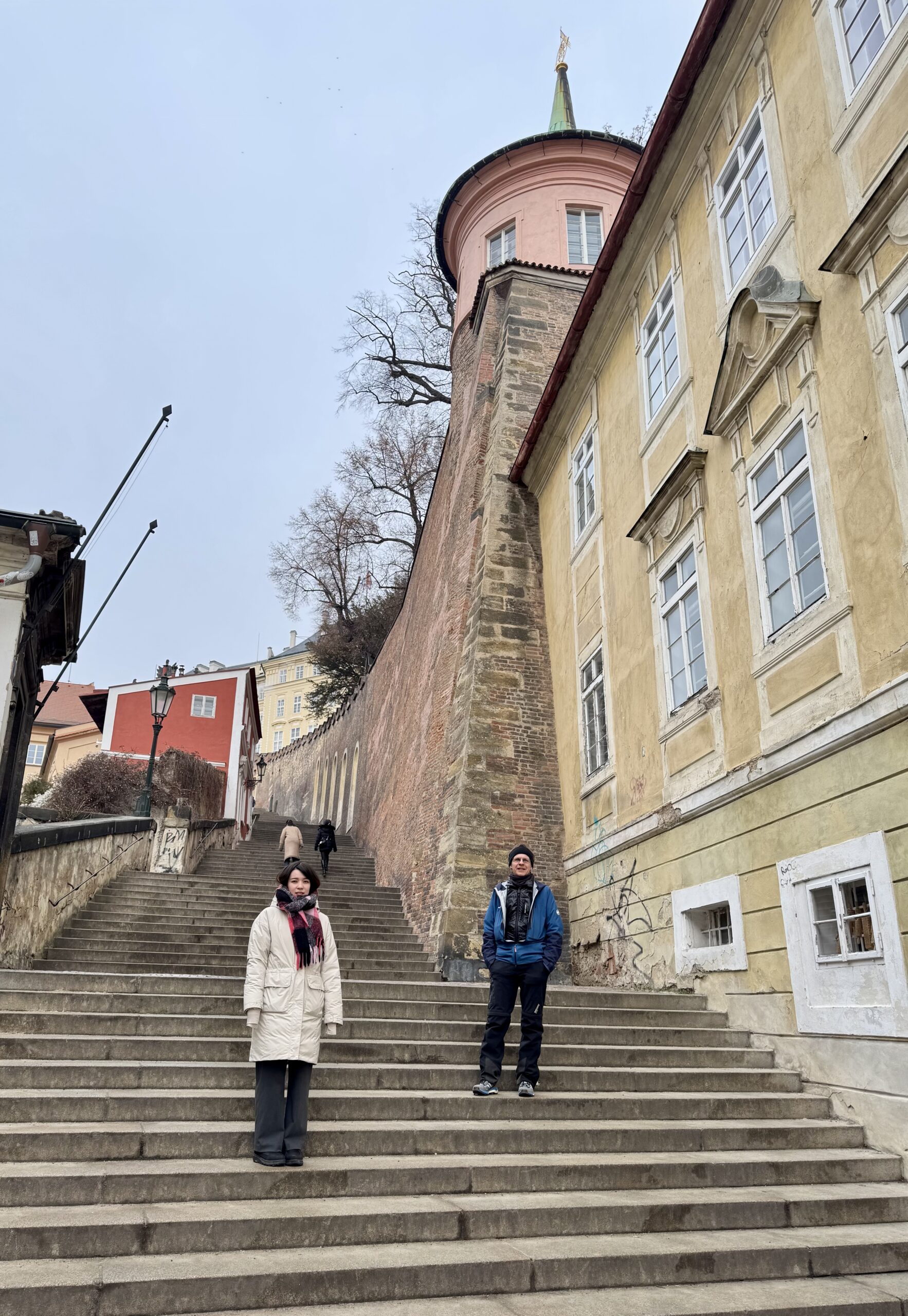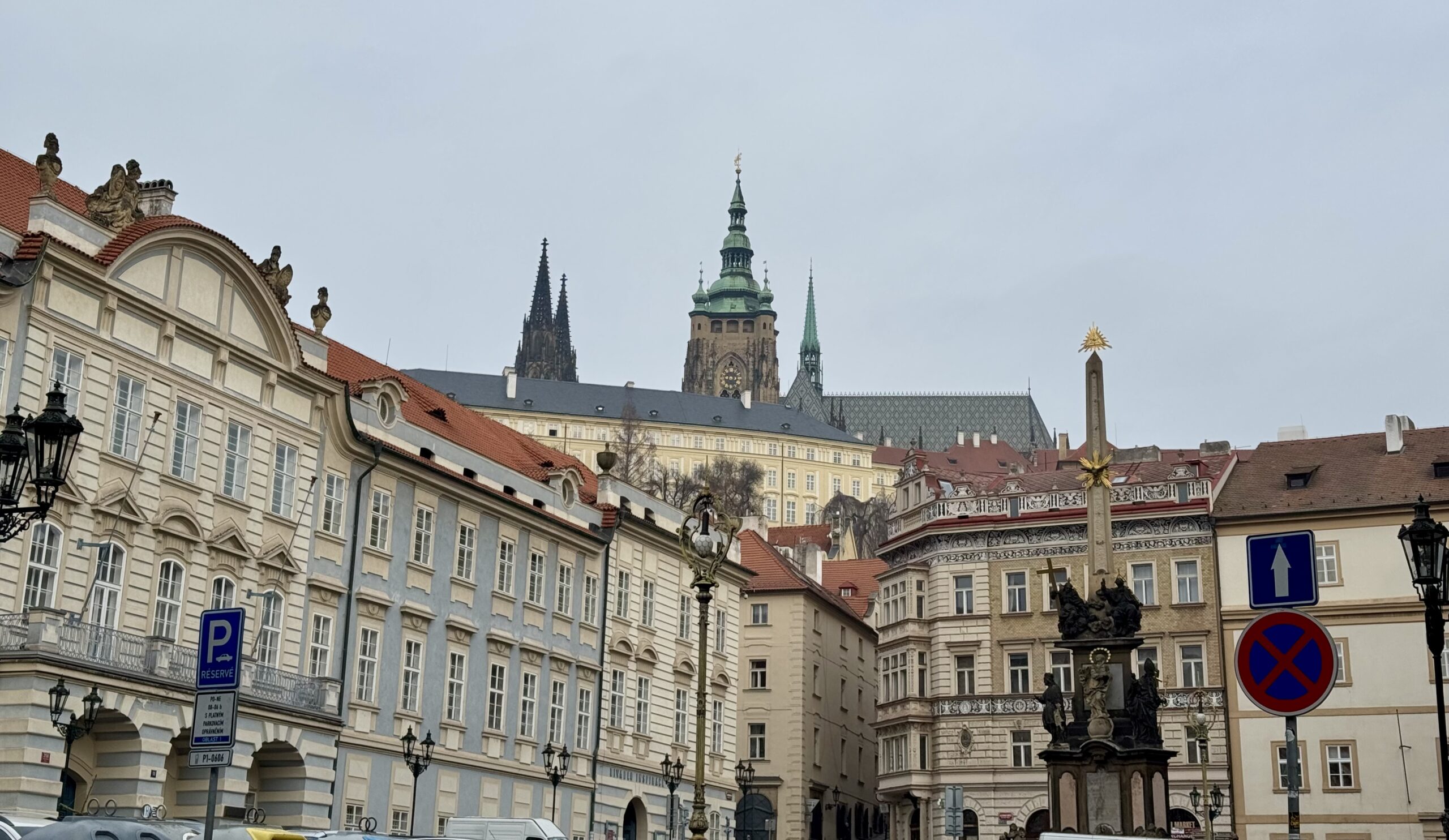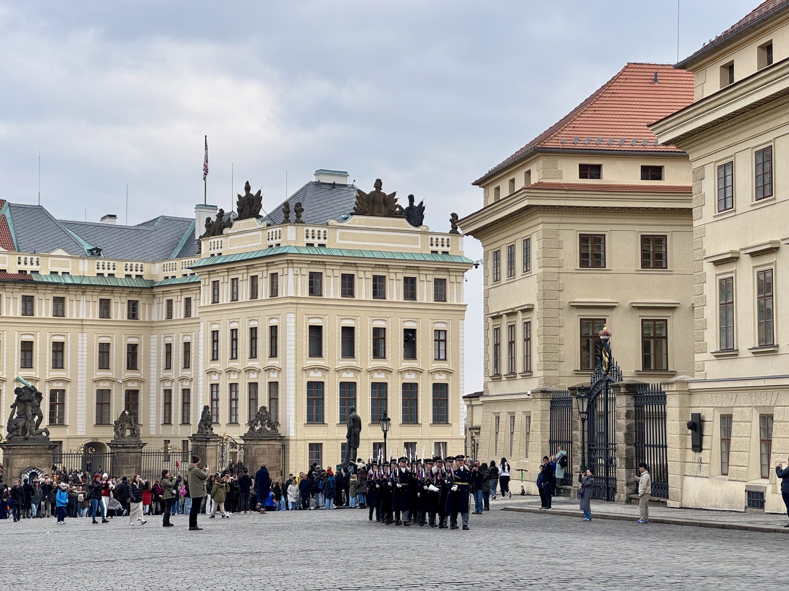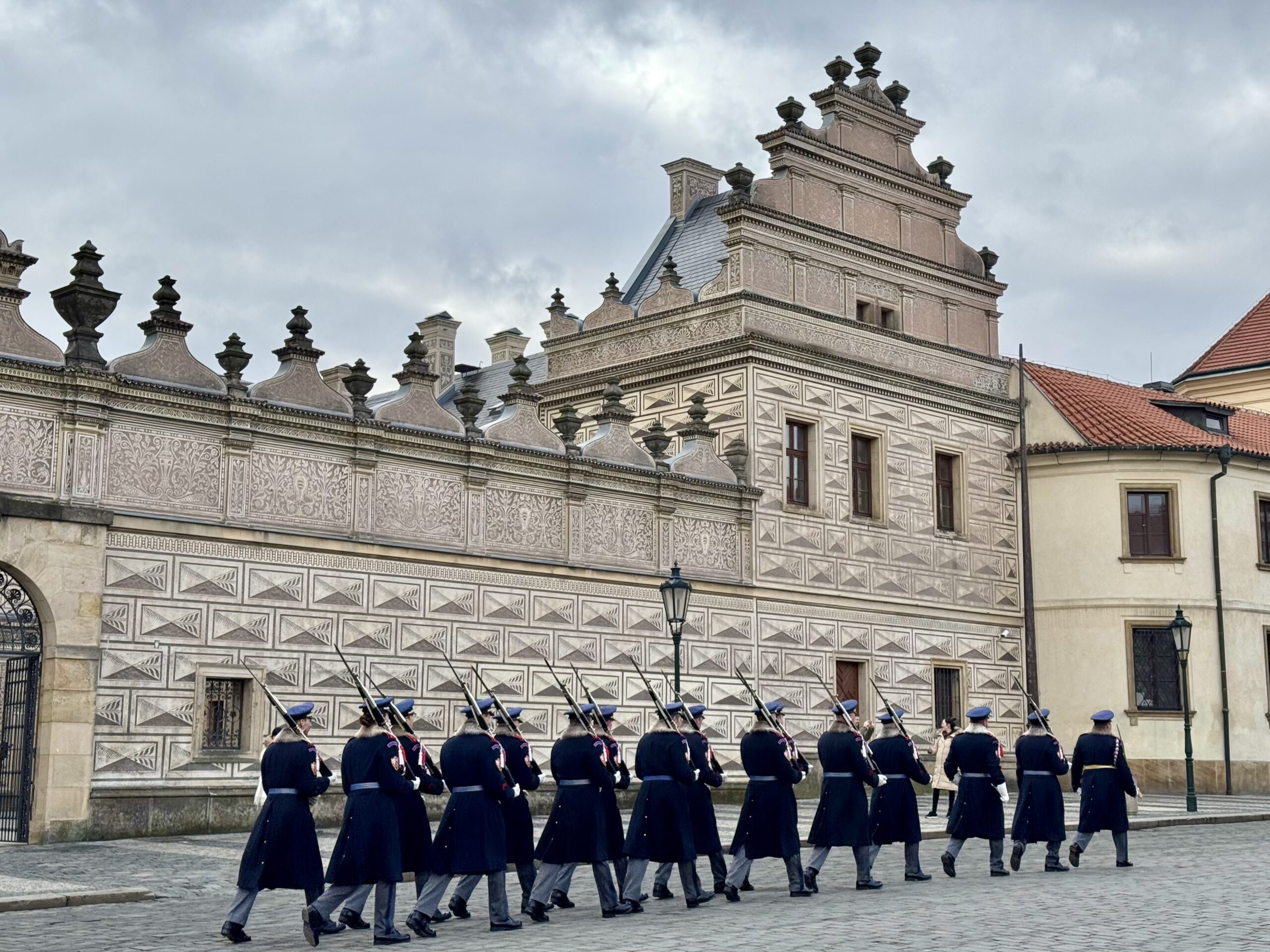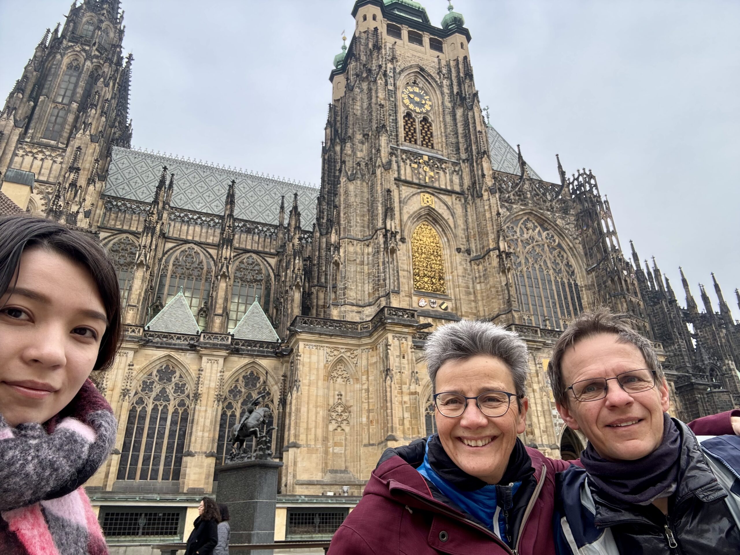 Heute erforschen wir die Kleinseite (Malá Strana) von Prag, auf der auch unsere Unterkunft liegt. Wir benötigen etwa zwanzig Minuten, um zur Prager Burg hoch zu steigen. Oben machen wir den „Hauptrundgang“, der uns in den alten Königspalast, die St.-Georgs-Basilika, das Goldene Gässchen und schliesslich die St.-Veits-Kathedrale führt. Beat kauft sich in dem Haus im Goldenen Gässchen, in dem Franz Kafka zwei Jahre lebte, „Die Verwandlung“ — wir haben ja eine längere Zugfahrt vor uns… Als wir das Gelände gegen 12 Uhr wieder verlassen, können wir gerade noch die Wachablösung verfolgen. Nach einem Spaziergang durch das um die Burg liegende Quartier Hradčany steigen wir wieder vom Hügel runter, suchen uns ein Mittagessen mit Reis und ruhen uns ein wenig aus.