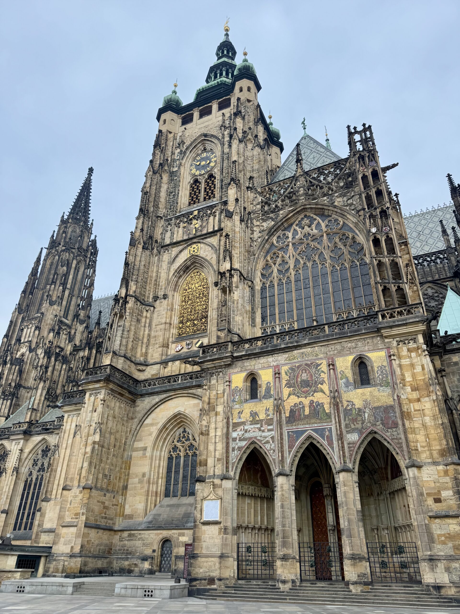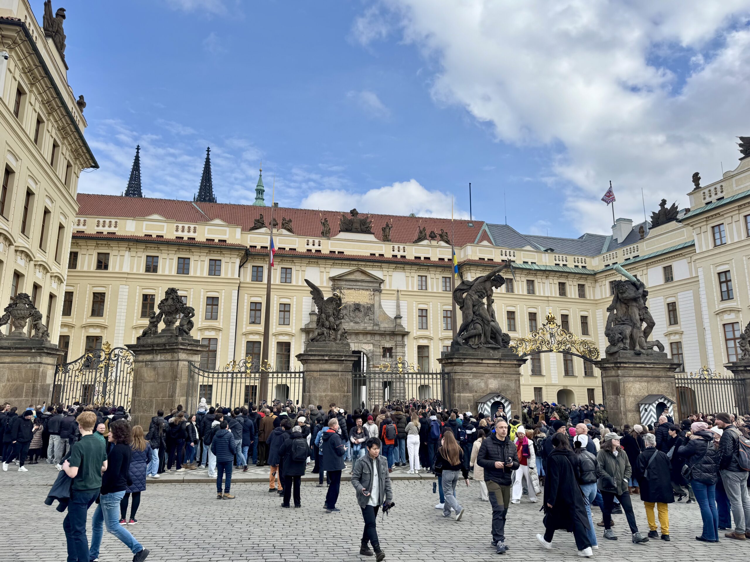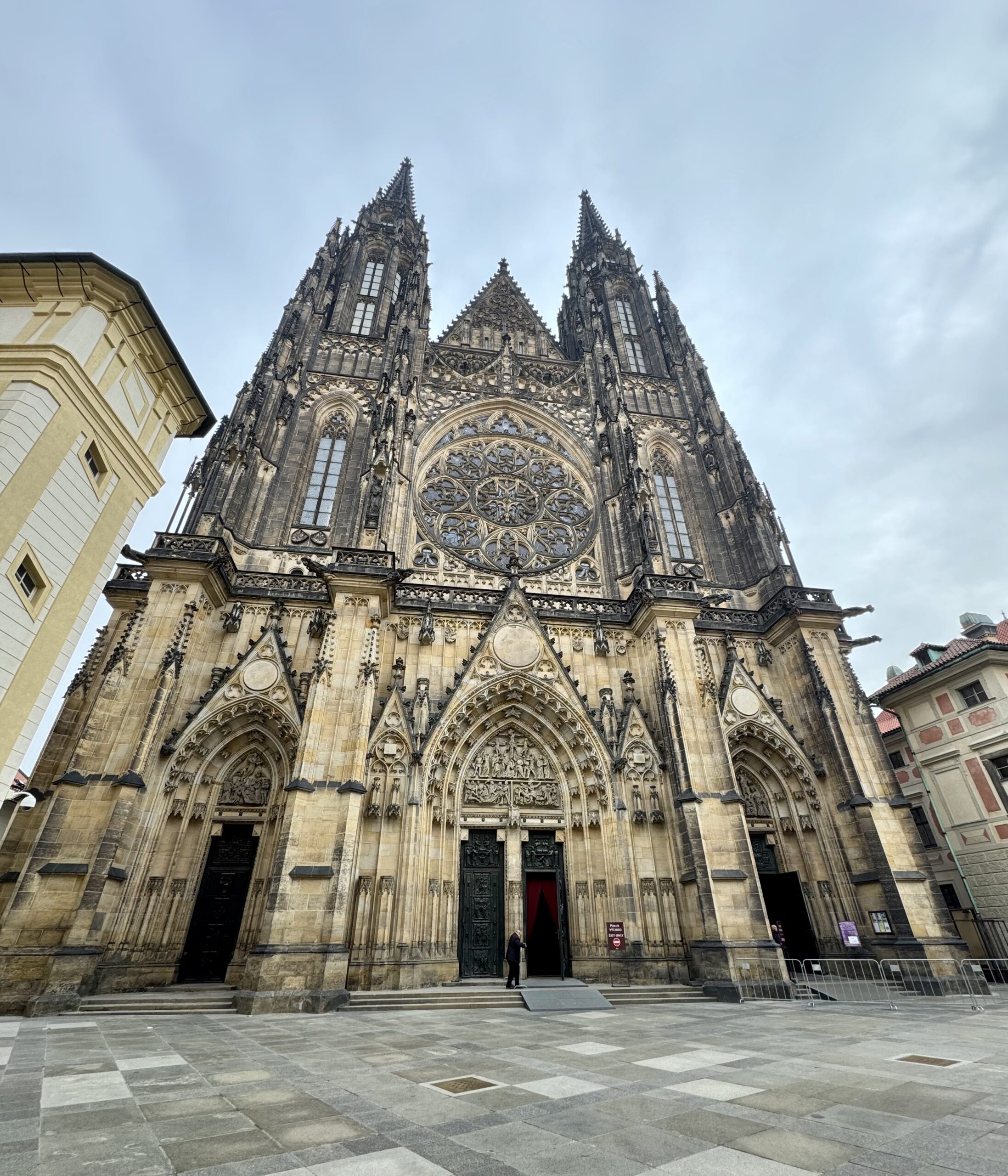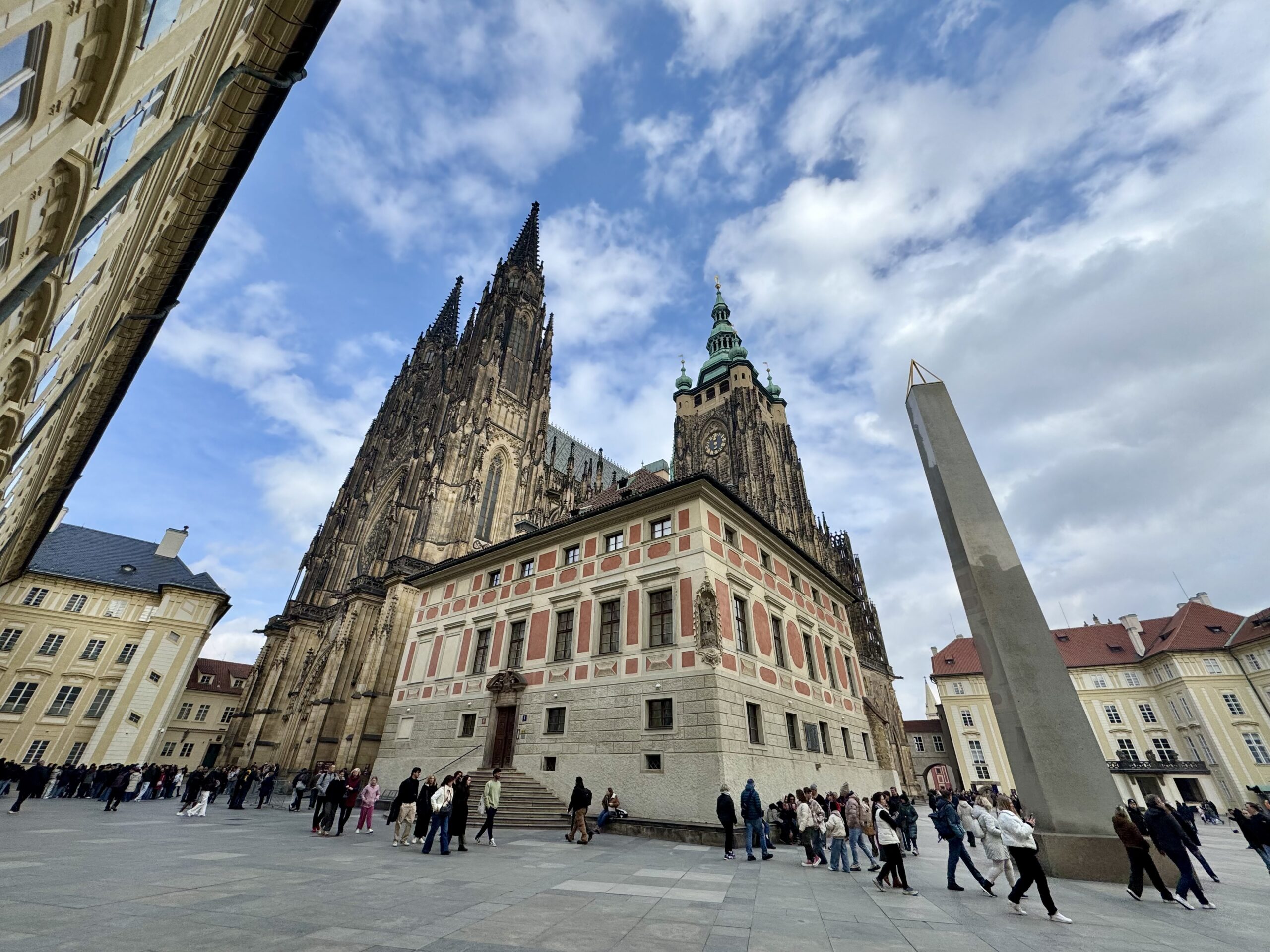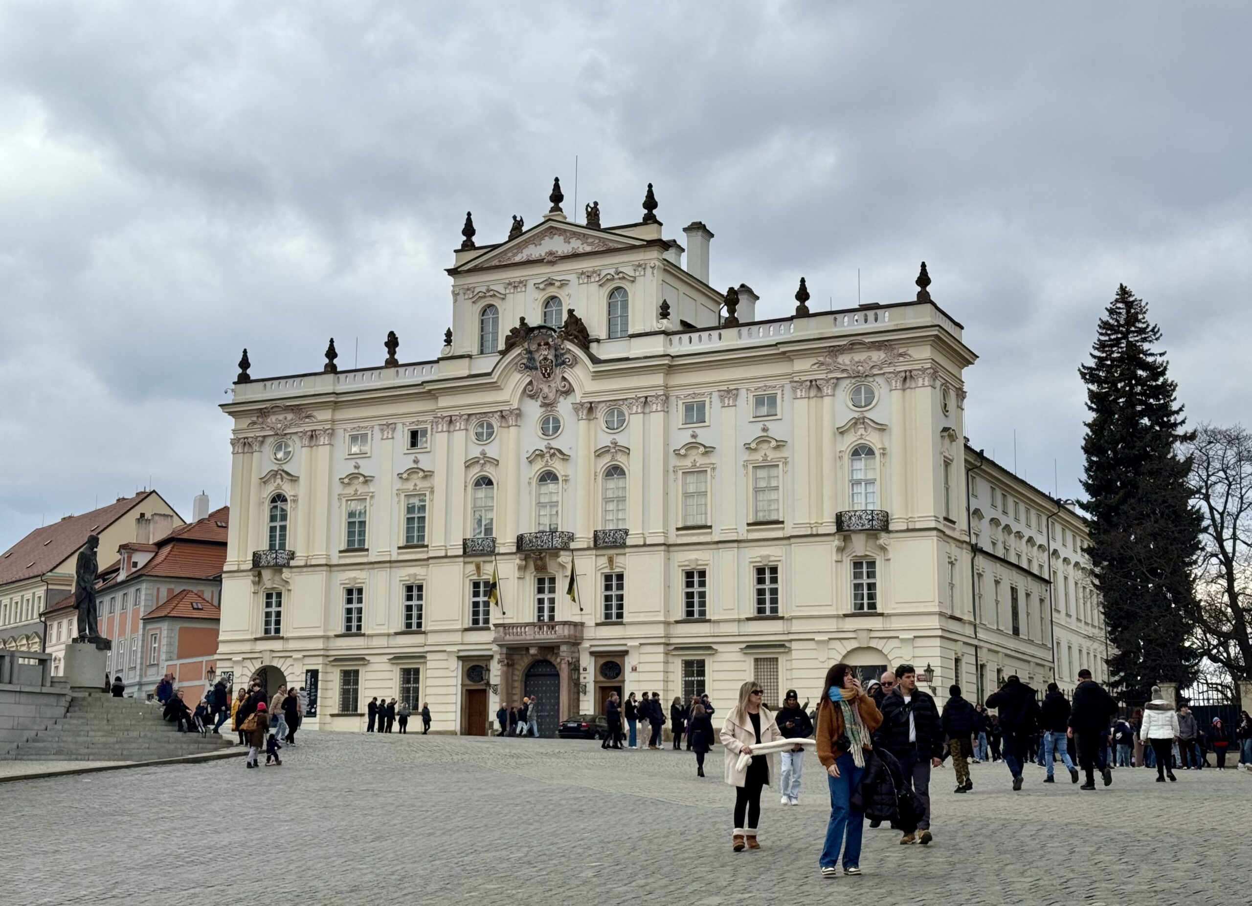 Heute erforschen wir die Kleinseite (Malá Strana) von Prag, auf der auch unsere Unterkunft liegt. Wir benötigen etwa zwanzig Minuten, um zur Prager Burg hoch zu steigen. Oben machen wir den „Hauptrundgang“, der uns in den alten Königspalast, die St.-Georgs-Basilika, das Goldene Gässchen und schliesslich die St.-Veits-Kathedrale führt. Beat kauft sich in dem Haus im Goldenen Gässchen, in dem Franz Kafka zwei Jahre lebte, „Die Verwandlung“ — wir haben ja eine längere Zugfahrt vor uns… Als wir das Gelände gegen 12 Uhr wieder verlassen, können wir gerade noch die Wachablösung verfolgen. Nach einem Spaziergang durch das um die Burg liegende Quartier Hradčany steigen wir wieder vom Hügel runter, suchen uns ein Mittagessen mit Reis und ruhen uns ein wenig aus.
