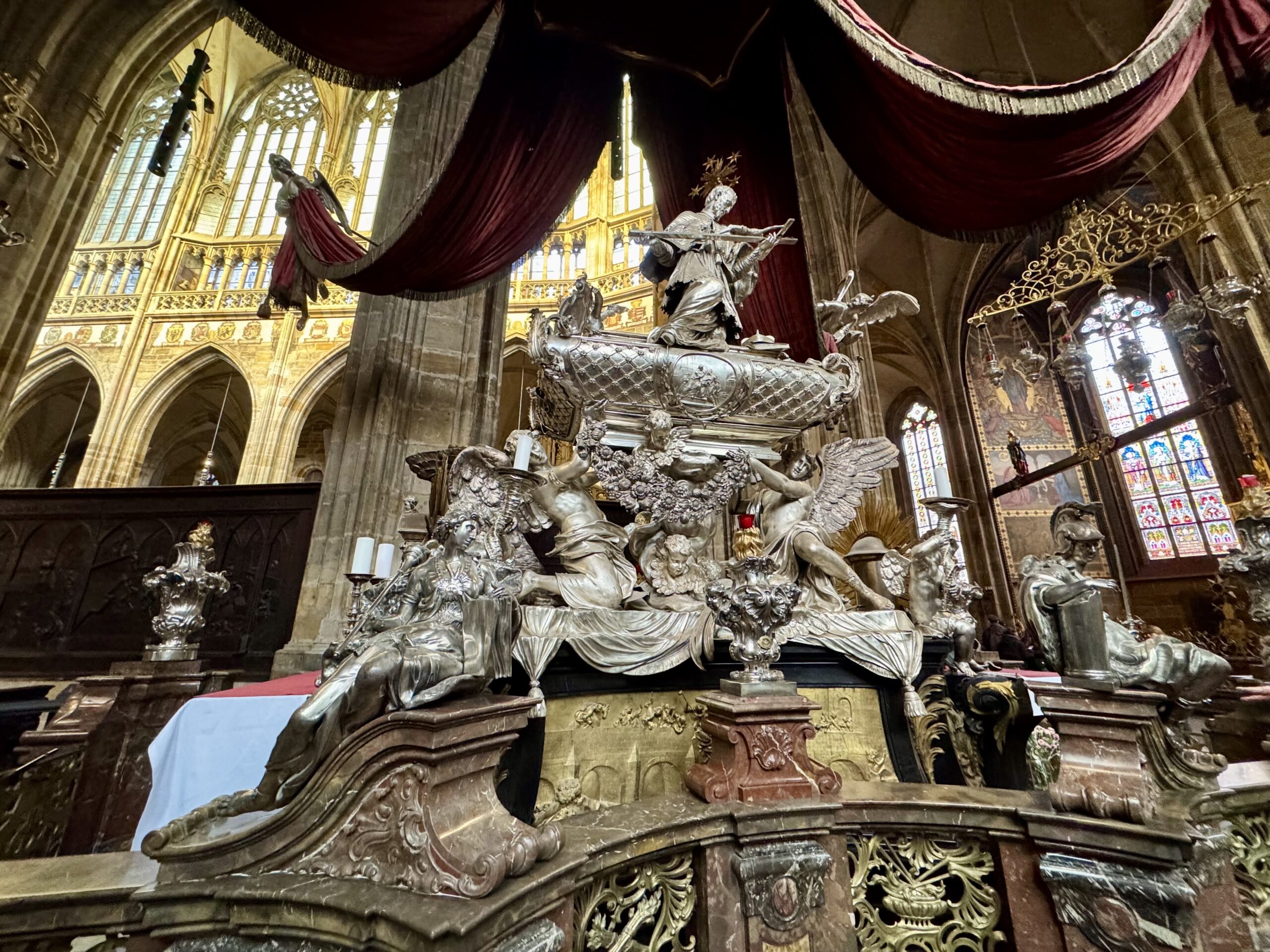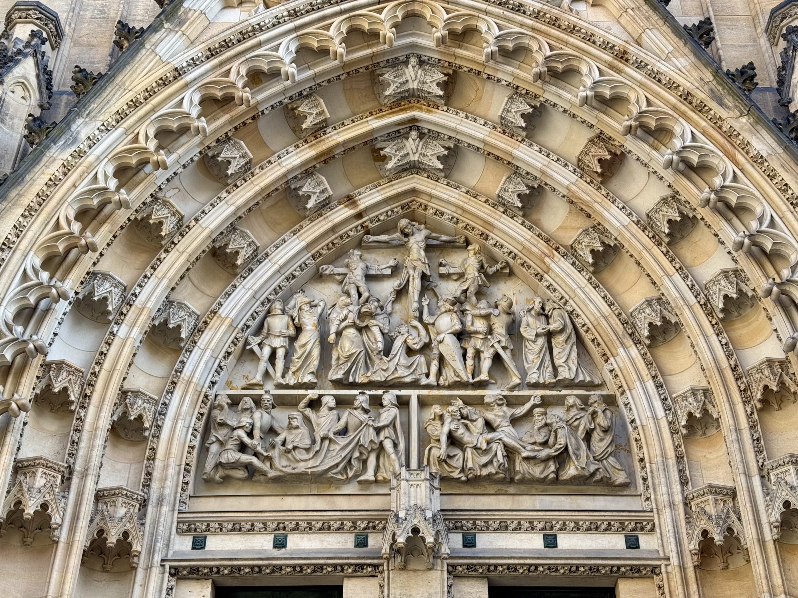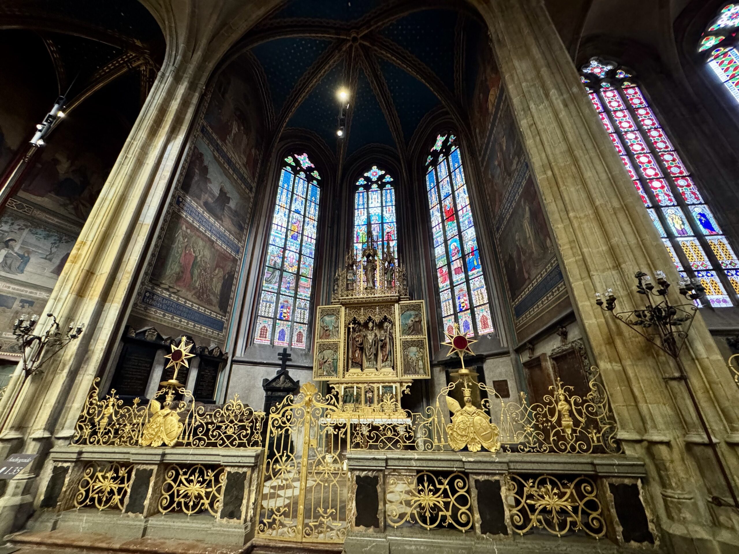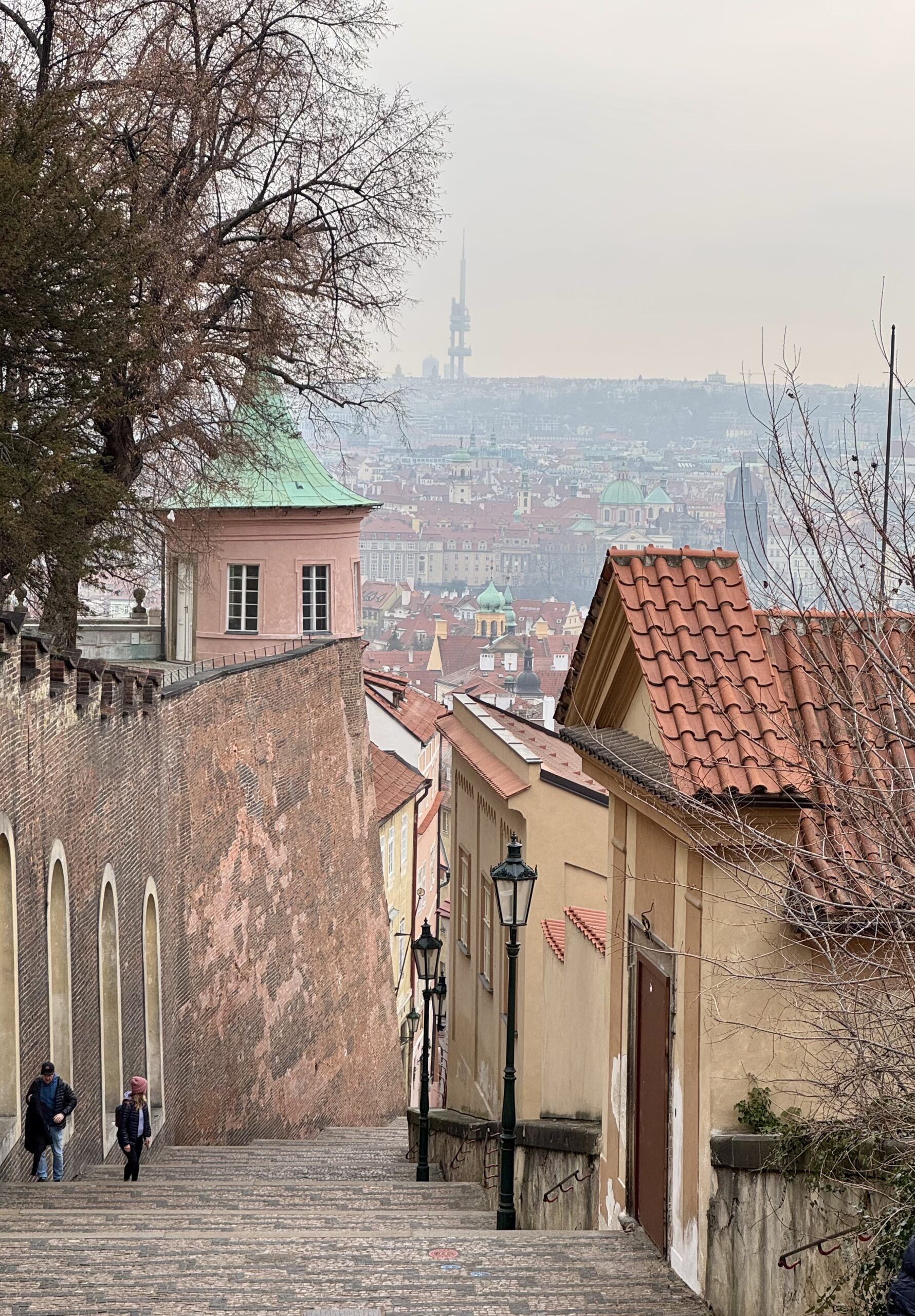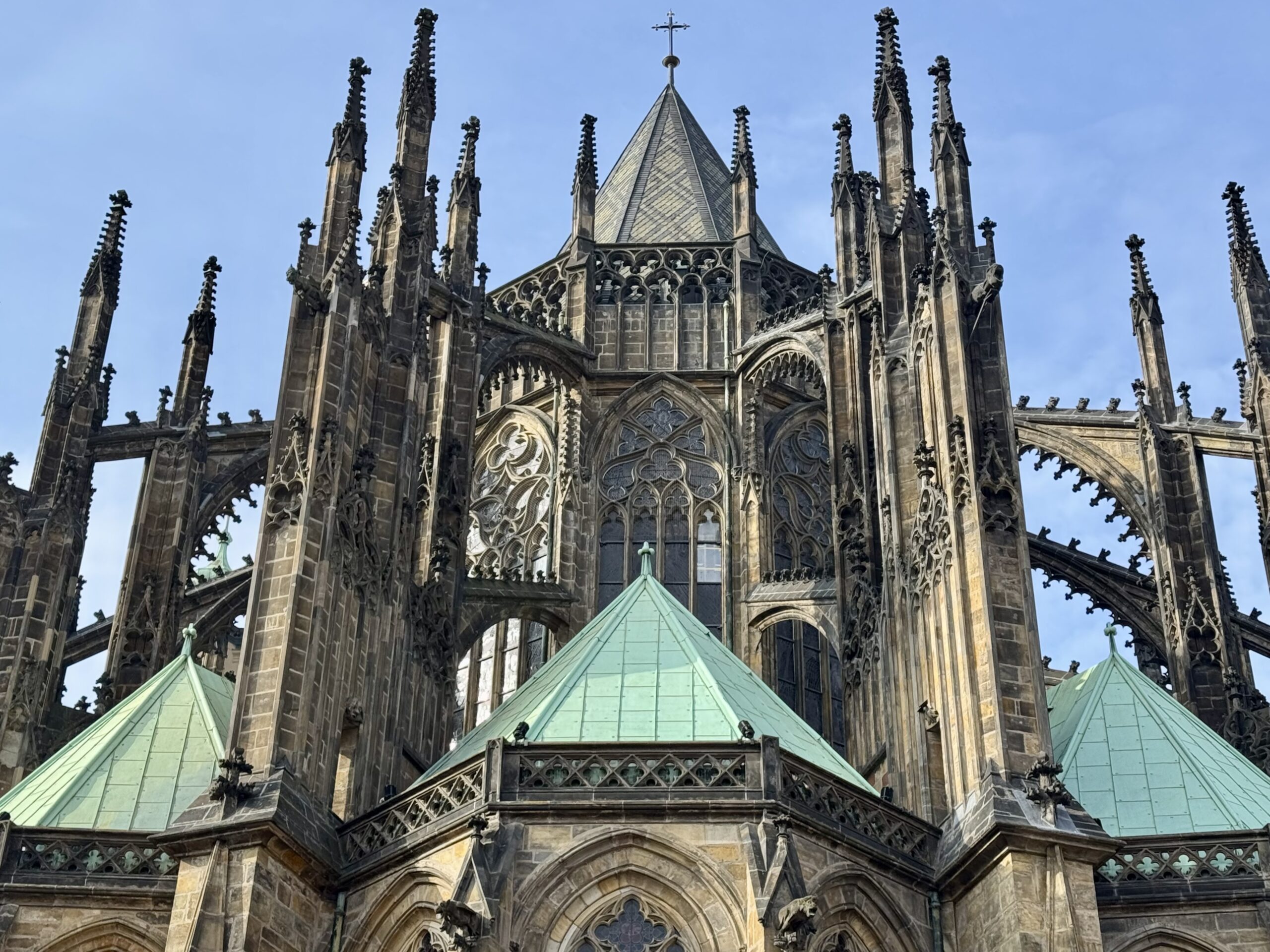 Heute erforschen wir die Kleinseite (Malá Strana) von Prag, auf der auch unsere Unterkunft liegt. Wir benötigen etwa zwanzig Minuten, um zur Prager Burg hoch zu steigen. Oben machen wir den „Hauptrundgang“, der uns in den alten Königspalast, die St.-Georgs-Basilika, das Goldene Gässchen und schliesslich die St.-Veits-Kathedrale führt. Beat kauft sich in dem Haus im Goldenen Gässchen, in dem Franz Kafka zwei Jahre lebte, „Die Verwandlung“ — wir haben ja eine längere Zugfahrt vor uns… Als wir das Gelände gegen 12 Uhr wieder verlassen, können wir gerade noch die Wachablösung verfolgen. Nach einem Spaziergang durch das um die Burg liegende Quartier Hradčany steigen wir wieder vom Hügel runter, suchen uns ein Mittagessen mit Reis und ruhen uns ein wenig aus.